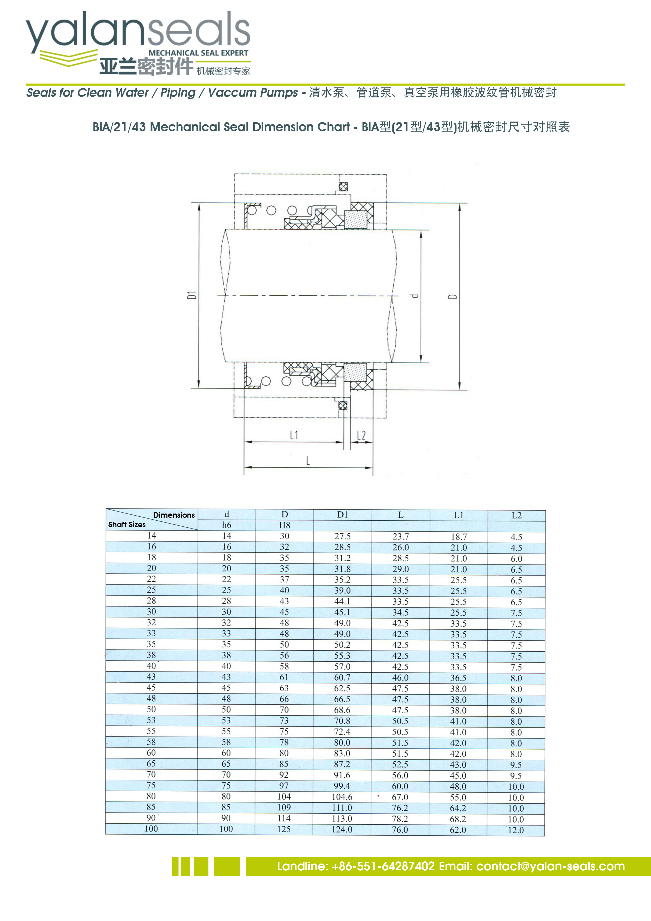 亞蘭BIA型,同類型也被成為21型或43型機械密封件,用于清水泵、管道泵和真空泵