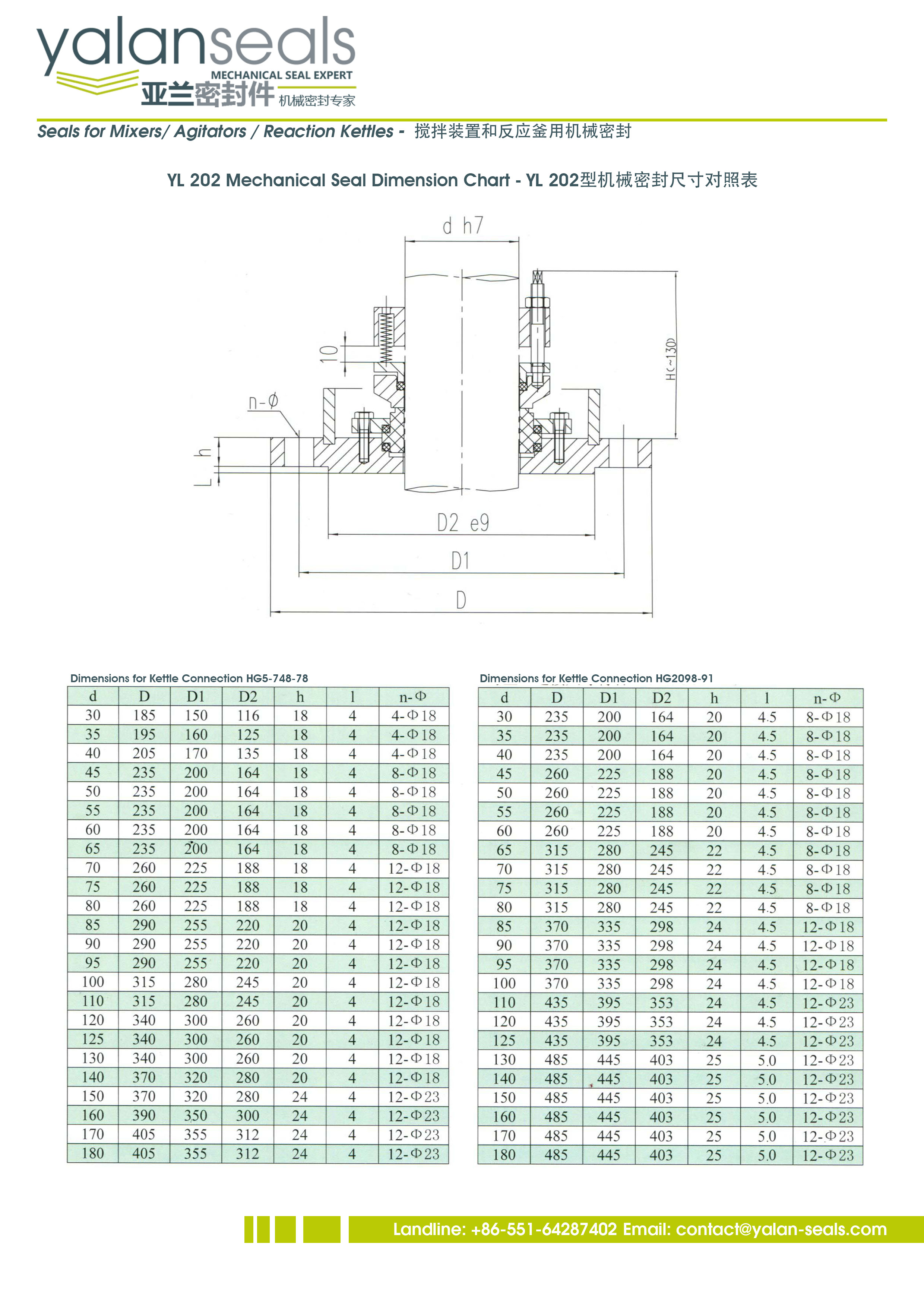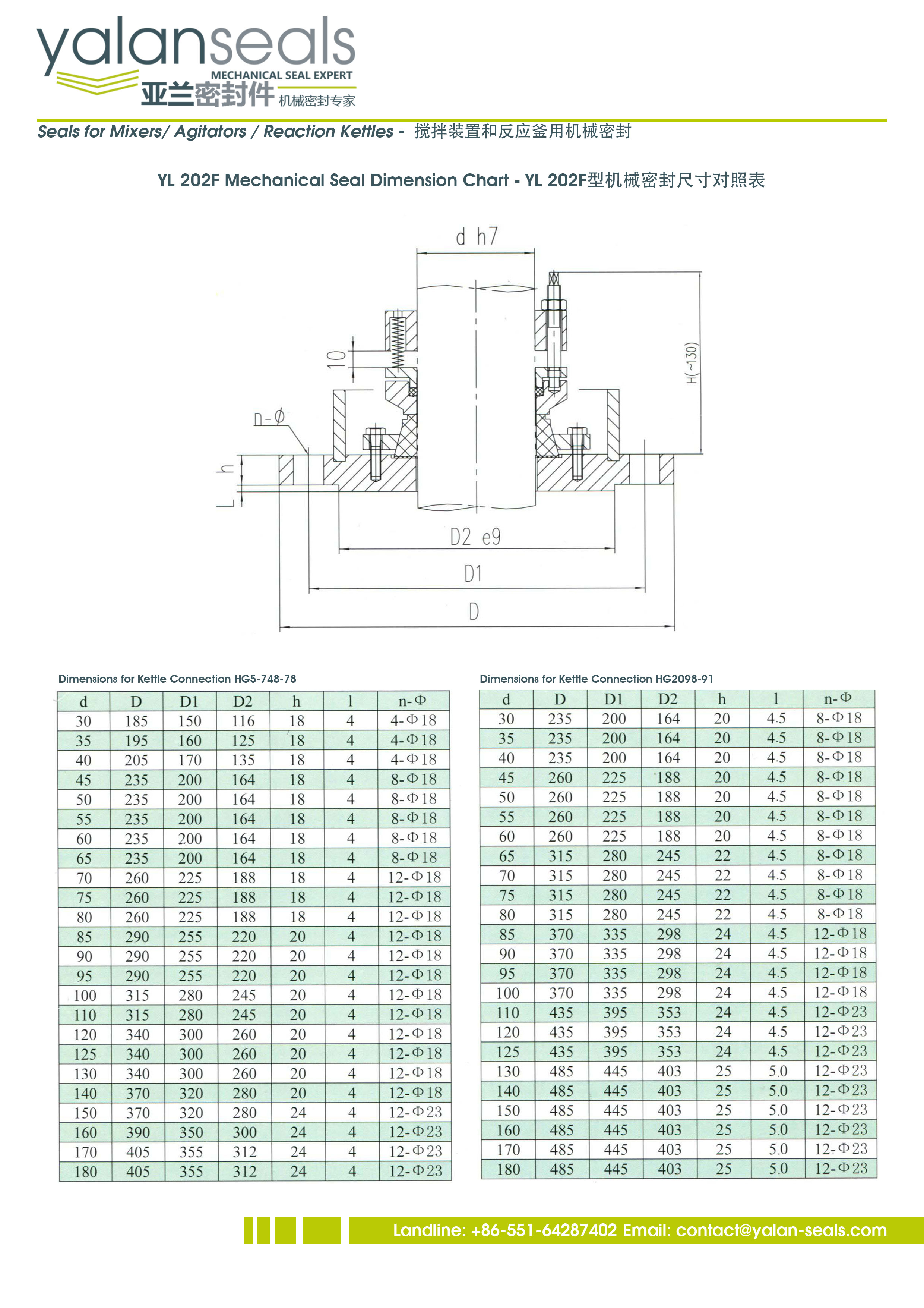 亞蘭202和202F型多彈簧機械密封件,用于頂部驅動攪拌設備